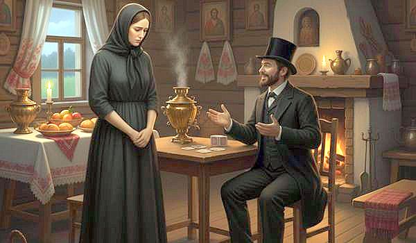 जब एक दिन वेसिली लकड़ी खरीदने मालगेव चला गया, तो वह पागल -सी हो गई। रोते-रोते वह सारी रात बिता देती। दिन भर पागल -सी रहती; कभी-कभी स्मिरनॉव जो मकान में किराये के कमरे में रहता था, उसे देखने जाया करता था।