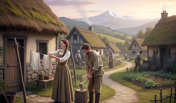 cow-dung as a fuel to prepare food for her husband and herself, thus fulfilling the demands of their romance drunk hearts.